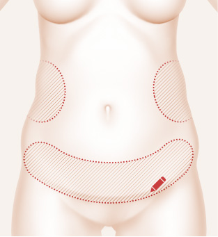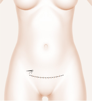 กรีดใต้สะดือ หลังจากนั้นทำการ แก้ไขช่วงผิวหนังที่หย่อยคล้อย
