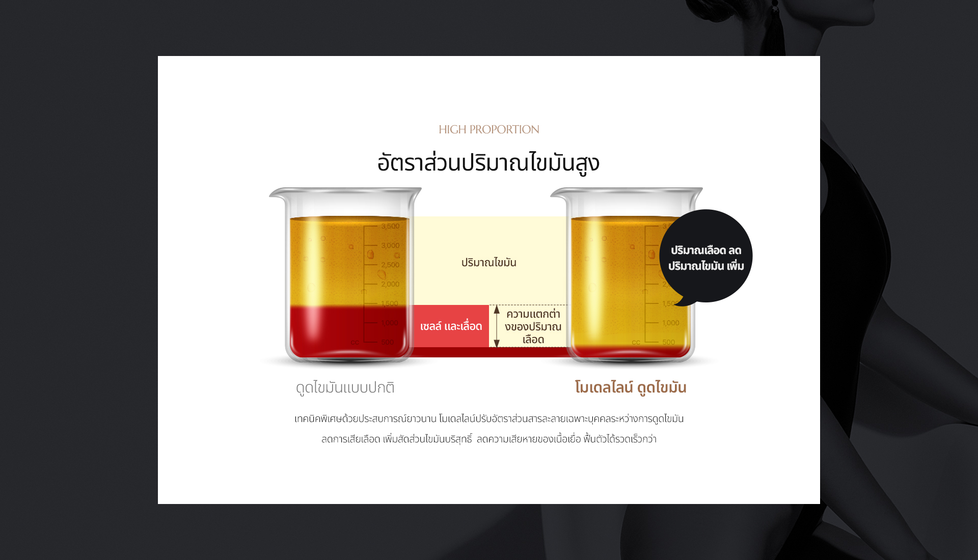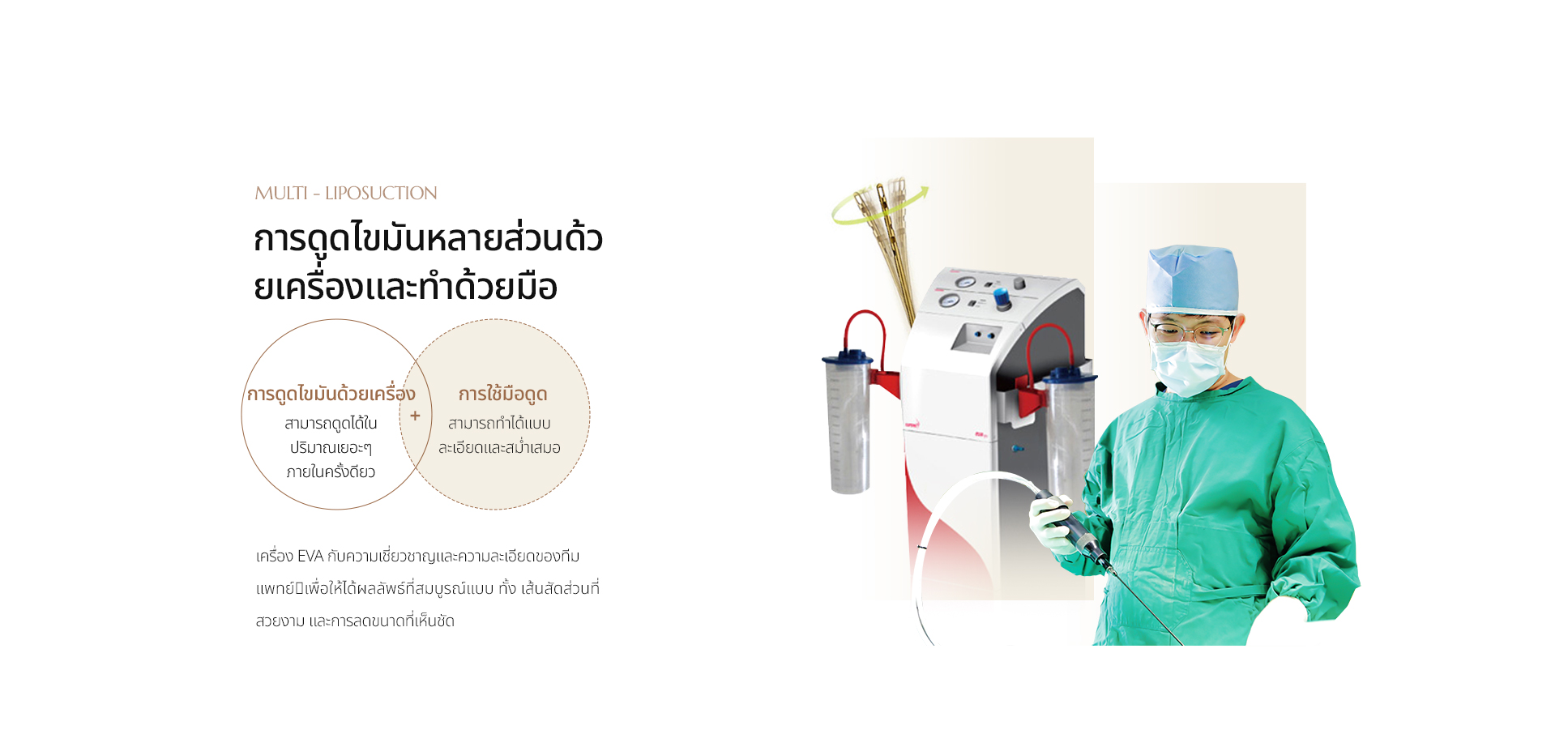 สามารถดูดไขมันในปริมาณที่เยอะ หลังจากนั้นจะปรับให้ได้รูปร่าง
