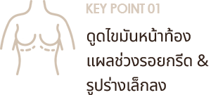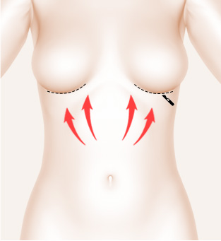 หลังทำ หน้าท้องส่วนบนในส่วนที่มีความยืดหยุ่นไม่เพียงพอ ช่วงสะดือจนถึงใต้ราวนม จะใช้ไหมในการช่วยไม่ให้ผิวหนังหย่อบยคล้อย เผื่อให้ได้ทรงเอวยกกระชับที่สวยขึ้น