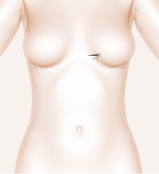 กรีดใต้ราวนม หลังจากนั้นทำการ แก้ไขช่วงผิวหนังที่หย่อยคล้อย