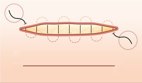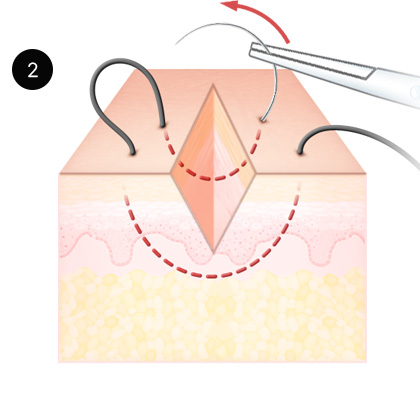 เพื่อไม่ให้เห็นรอยแผล ทำการเย็บใต้ชั้นผิว 3 ชัน