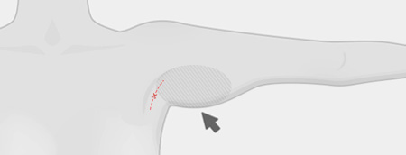 ขั้นที่ 2 หย่อนคล้อยตั้งแต่รักแร้ยาวมาถึงช่วงกึ่งกลางต้นแขน แนวผ่าตัดแนวนอน รักแร้ - ต้นแขนกลาง