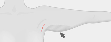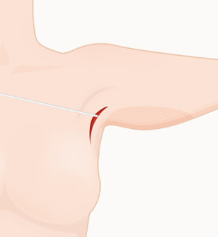 ขั้นที่ 1 หย่อนคล้อยเฉพาะบริเวณรักแร้ แนวผ่าตัดแนวนอนที่รักแร้