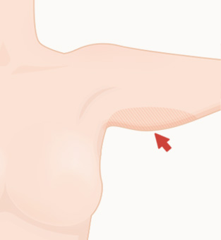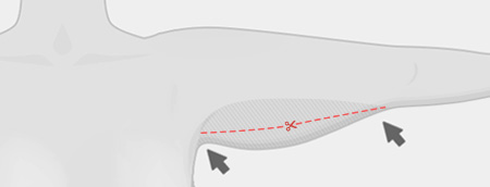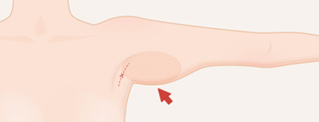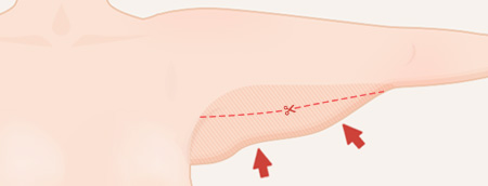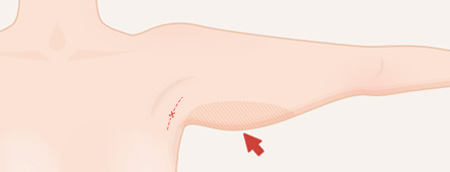 ขั้นที่ 1 หย่อนคล้อยเฉพาะบริเวณรักแร้ ผ่าตัดแนวนอนที่รักแร้